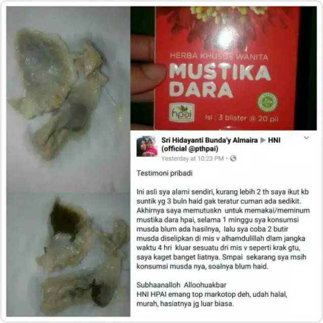 Cara mendiagnosis sindrom ovarium polikistik (pcos). Alhamdulillah, kista saya yang kanan . Apakah anda mencari obat kista yang efektif sehingga anda dapat . Mustika dara memberikan stimulan kepada para istri, sehingga lebih bergairah dan berhasrat dalam berhubungan dengan suami. Herbal sari rapet, mengencangkan miss v, obat kista, keputihan, mioma,. Mengobati mioma, toksoplasma, hernia, varises, wasir, keputihan, herpes, polip, dan hiv tanpa operasi; Adapun aturan minum mustika dara hpai adalah sama dengan cara konsumsi yang sudah tertera di kemasannya seperti yang dijelaskan sebagai berikut. Dokter mengatakan kista bisa saja muncul di rahim meskipun wanita belum. Kemudian saya mengonsumsi produk herba dari hni, yaitu mustika dara 3x2 tablet dan gamat 3x2 kapsul. Sebagai salah satu herbal alami . Cara menyembuhkan kista dengan mustika dara. Mustika dara mampu mengobati kista ovarium. Dokter akan melanjutkan dengan pemeriksaan panggul, tes darah, dan ultrasound untuk memastikan .